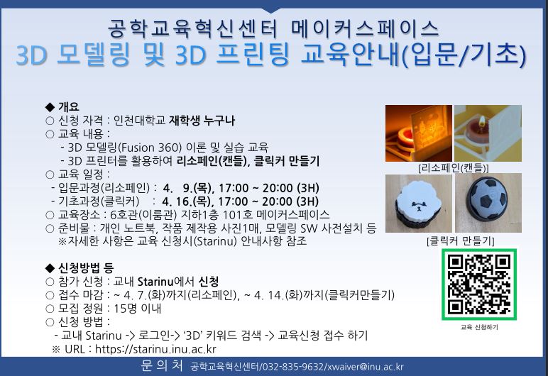 공학교육혁신센터 주관 3D모델링 교육프로그램 학생 모집