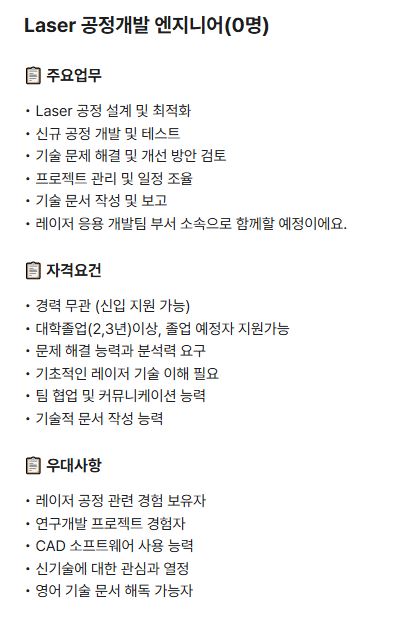 (주)아이쓰리엔지니어링 Laser 공정개발 엔지니어 모집