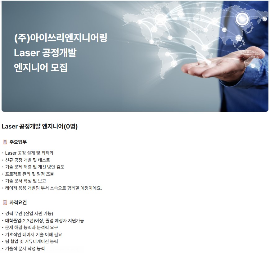 [(주)아이쓰리엔지니어링] (주)아이쓰리엔지니어링 Laser 공정개발 엔지니어 모집 (채용시 마감) - 사람인